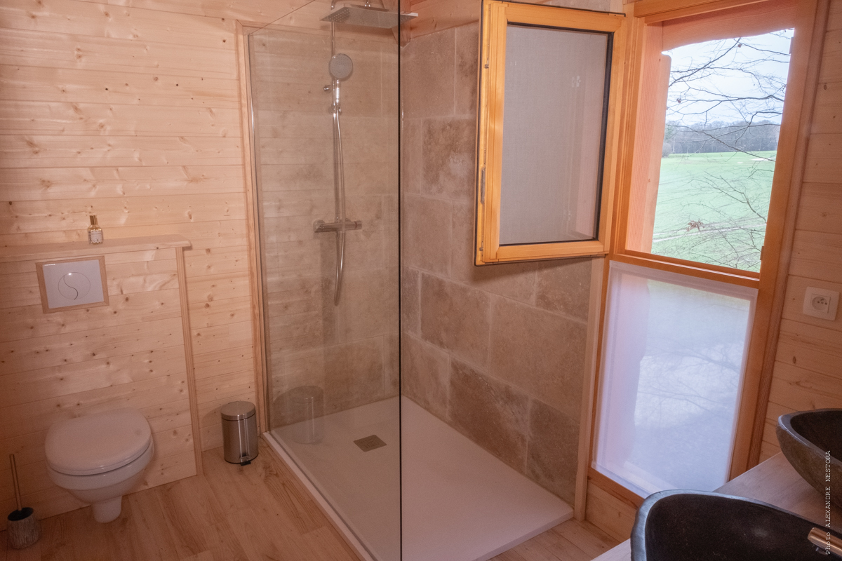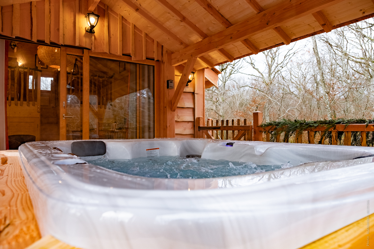 Depuis votre spa privatif, savourez l’instant : écoutez le chant des oiseaux, observez la lumière filtrant à travers les feuilles, ou partagez un verre de vin sous le ciel étoilé. En journée, partez à la découverte du domaine, promenez-vous dans les sous-bois, longez l’étang et observez la faune locale.