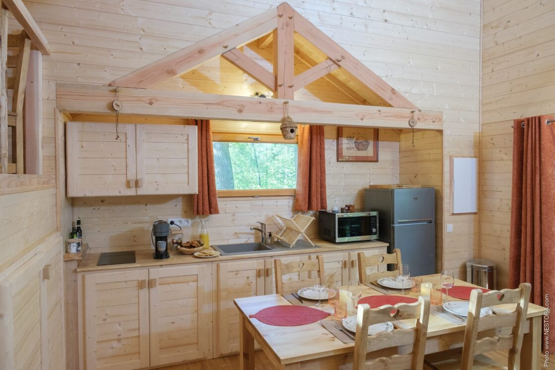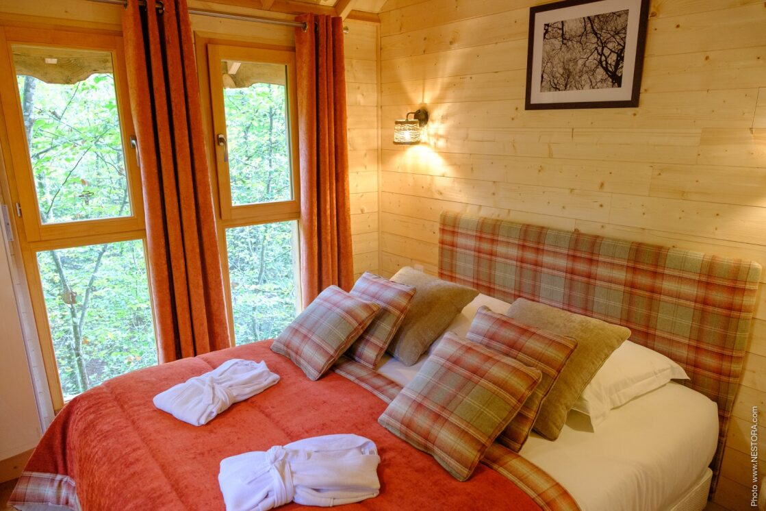 chaleureux où l’on se sent immédiatement déconnecté du quotidien. Profitez de sa literie confortable avec son lit queen size dans une chambre et ses 2 x 2 lits superposés dans la mezzanine. En couple, en famille ou entre amis, c’est le lieu idéal pour s’offrir une parenthèse rare, hors du temps. Que vous veniez pour une nuit, un week-end ou quelques jours de pause, la cabane vous enveloppe dans une atmosphère douce et naturelle.